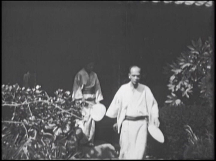 本殿にお参りした後、別荘に戻った一家は座敷の縁側で大人はビール、子供たちはジュースかサイダーを飲んで喉を潤します。弥一郎夫婦は多分息子の富一郎に促されて別荘の庭園を散歩します。明治元年生まれの富一郎はすこし照れながら妻を従えて庭園各所を歩いて回ります。
