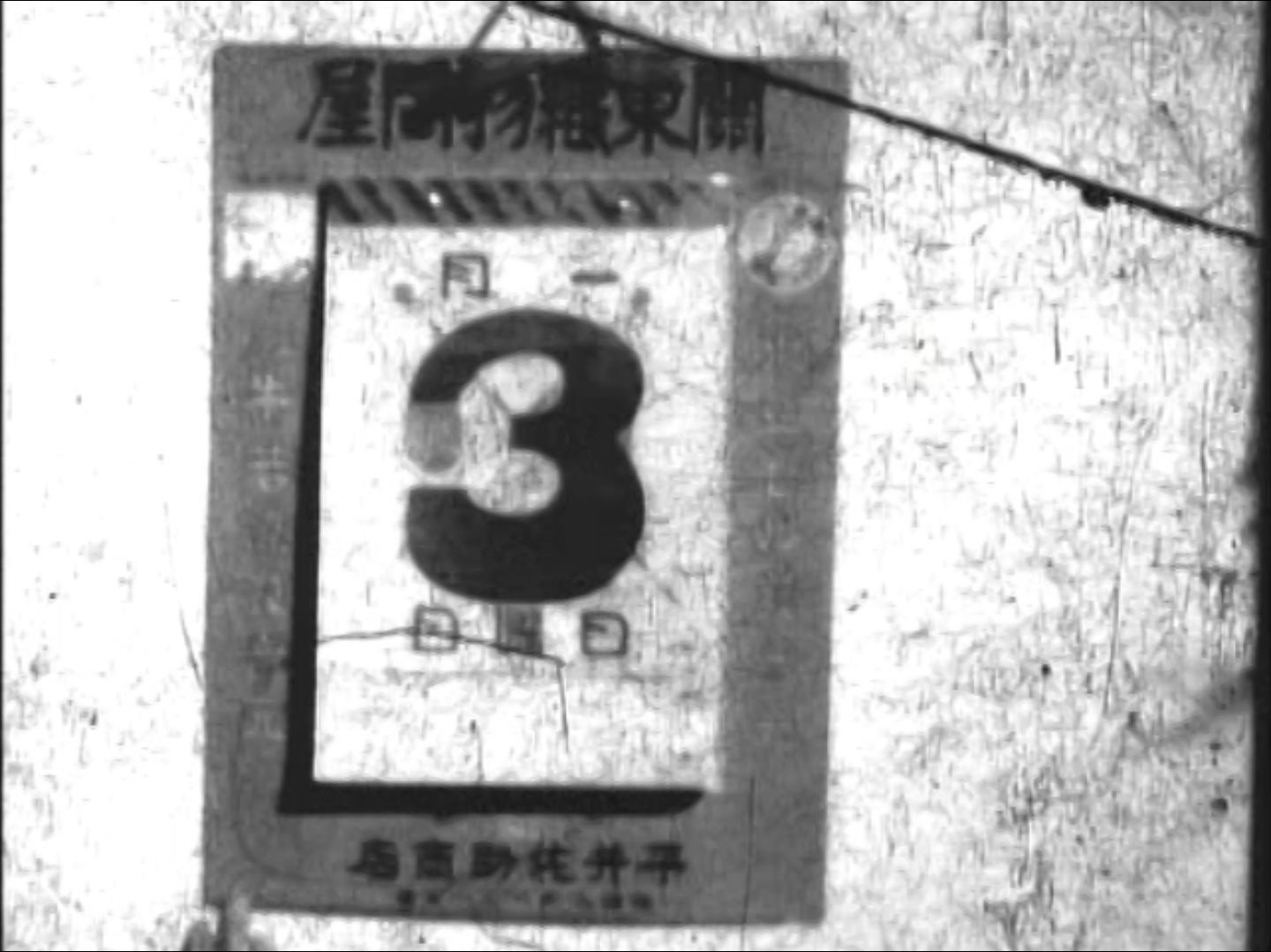 最初の映像は昭和7年1月3日の日めくりカレンダーです。この1月3日の日めくりには日の丸の旗が描かれています。明治から昭和初期までは1月3日は元始祭(げんしさい)と呼ばれる祭日でしたが、昭和23年に廃止されました。