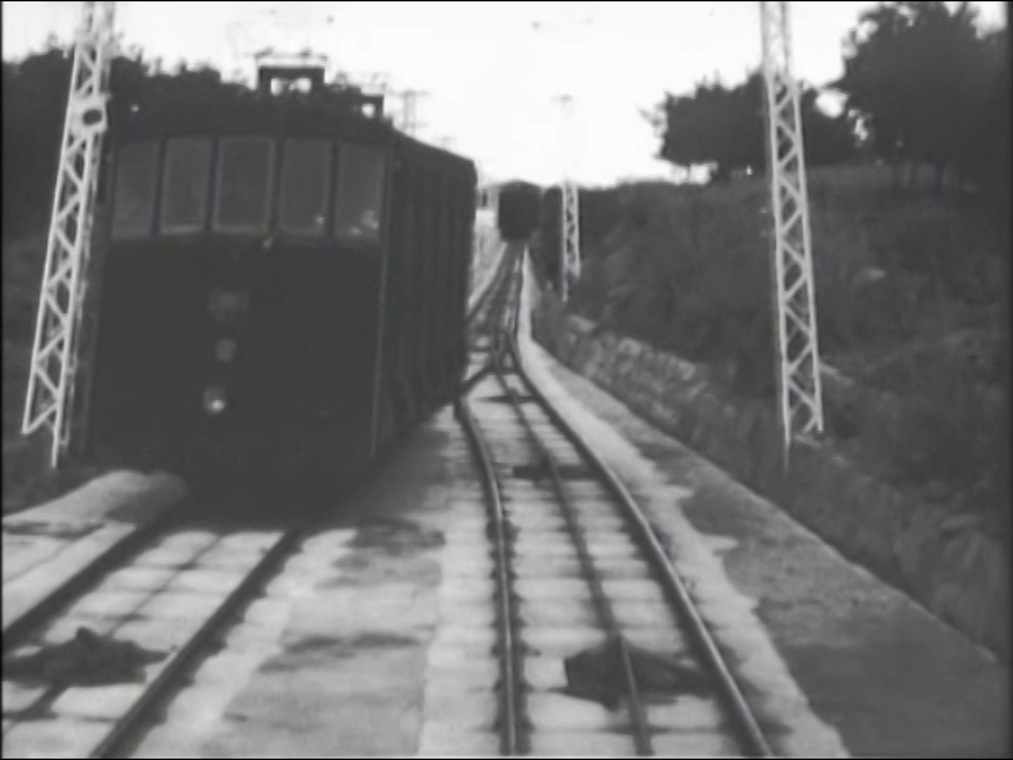 最上稲荷の本殿の参拝を終えたあと、奥の院に行くため一家はケーブルカーに乗ります。このケーブルカーは第二次世界大戦中の昭和19年に軍用の金属供出のため廃線になります。この映像は実際に動いているケーブルカーが撮影されている極めて貴重なものです。